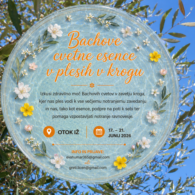 Podroben program delavnic Bachove cvetne esence v plesih v krogu prejmete ob prijavi. Delavnice so namenjene odraslim (polnoletnim) osebam vseh starosti in ne zahtevajo predznanja. Za dodatne informacije in prijave pišite na evahumar365@gmail.com ali na greti.licen@gmail.com.